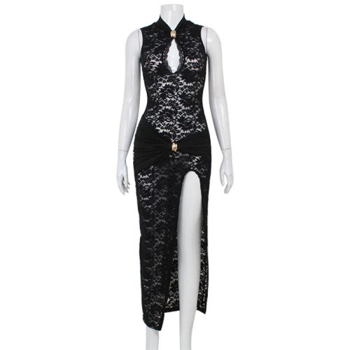 Women’s Summer Long Club Dress – Floral Lace with Sexy Back Lace-Up