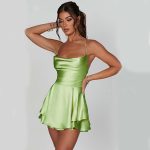 Sexy Suspender Skirt For Women Elegant Slim Strap Satin Backless Lace Up A-Line Short Dress Lady