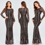 Sparkly Evening Gown – Long Sleeve Sequins Dress for Parties