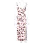Lace Flowers Print Long Dress Sexy Fashion Slit Suspender Dress Summer Womens Clothing