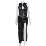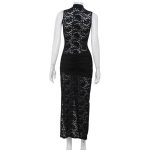 Women’s Sexy Hollow Out Lace Sleeveless Slim Fit High Slit Dress
