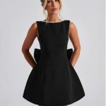 Fashion Big-Bowed Pearls Backless Dress Summer Slim Sleeveless A-line Dresses For Party Evening Women’s Clothing