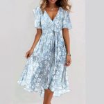 Discover this floral chiffon dress for women – soft, breathable, and perfect for hot weather. The V-neck & short sleeves add a chic summer look. Get yours today!