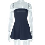 Women’s Black And White Patchwork Summer Dress Y2K Trend Slash Neck Backless Sweet Girl Chic Ruched Mini Bodycon Streetwear